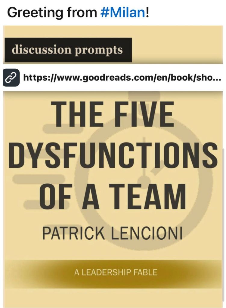 Why Teams Dysfunction? Captain Khalid Alhashmi Change, Leadership, Management May 30, 2023June 23, 2023 1 Minute Home Discover more from Don’t Sink Subscribe to get the latest posts sent to your email. Type your email… Subscribe Share it: Click to share on LinkedIn (Opens in new window) LinkedIn Click to share on Facebook (Opens in new window) Facebook Click to email a link to a friend (Opens in new window) Email Click to share on Reddit (Opens in new window) Reddit Click to share on WhatsApp (Opens in new window) WhatsApp Click to share on Tumblr (Opens in new window) Tumblr Click to share on Pinterest (Opens in new window) Pinterest Click to share on Telegram (Opens in new window) Telegram Click to share on X (Opens in new window) X Like Loading... Related Published May 30, 2023June 23, 2023
